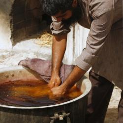 Ajrakh is a time-honored emblem for the local communities of Kachchh. Nomadic pastoralist and agricultural communities like the Rabaris, Maldharis, and Ahirs wear Ajrakh printed cloth as turbans, lungis, or stoles. It was given as a gift for the Muslim festival of Eid, for bridegrooms, and for other special occasions. The colors of a true Ajrakh textile are fast. The cloth is made in a sixteen step process of washing, dyeing, printing, and drying, which requires a high level of skill and concentration in order to keep colors fast and even. Pomegranate seeds, gum, Harde powder, wood, flour of Kachika, flower of Dhavadi, alizarine and locally cultivated Indigo are just some of the natural resources that printers in this craft.