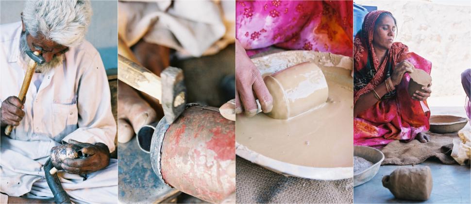 As the popularity of the craft grows, more protection for artisans in this risky craft must be put in place. To this end, Khamir helped implement safety measures for village workplaces including distribution of safety kits and helped artisans get health insurance. Using indigenous local skills and resources Khamir built a prototype of a closed firing kiln. It has now been tested successfully and is being adopted by artisans’ in their work places. Khamir was supported in these activities by SETU – The Bridge to Artisans, who has been a committed buyer of this craft. Technical guidance was given by the Hazards Center, Delhi, Ramzubhai Kumbhar ( a local potter ) and Prithvi Singh Deo, a ceramic artist.
